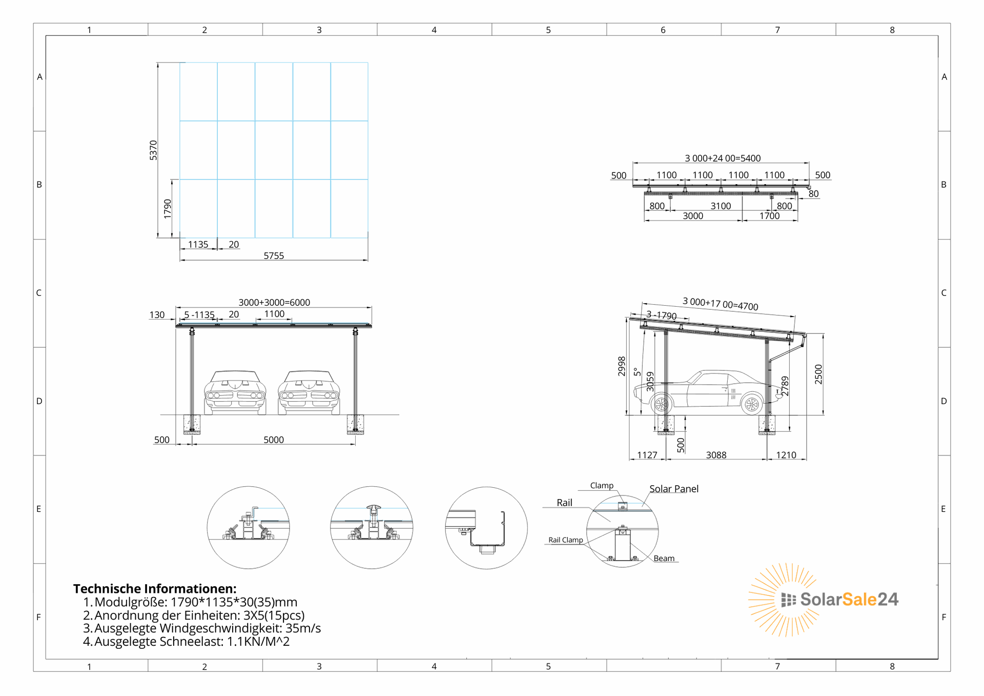 - Modulanordnung: Vertikal 3x5 (Insgesamt 15 Solarmodule)
